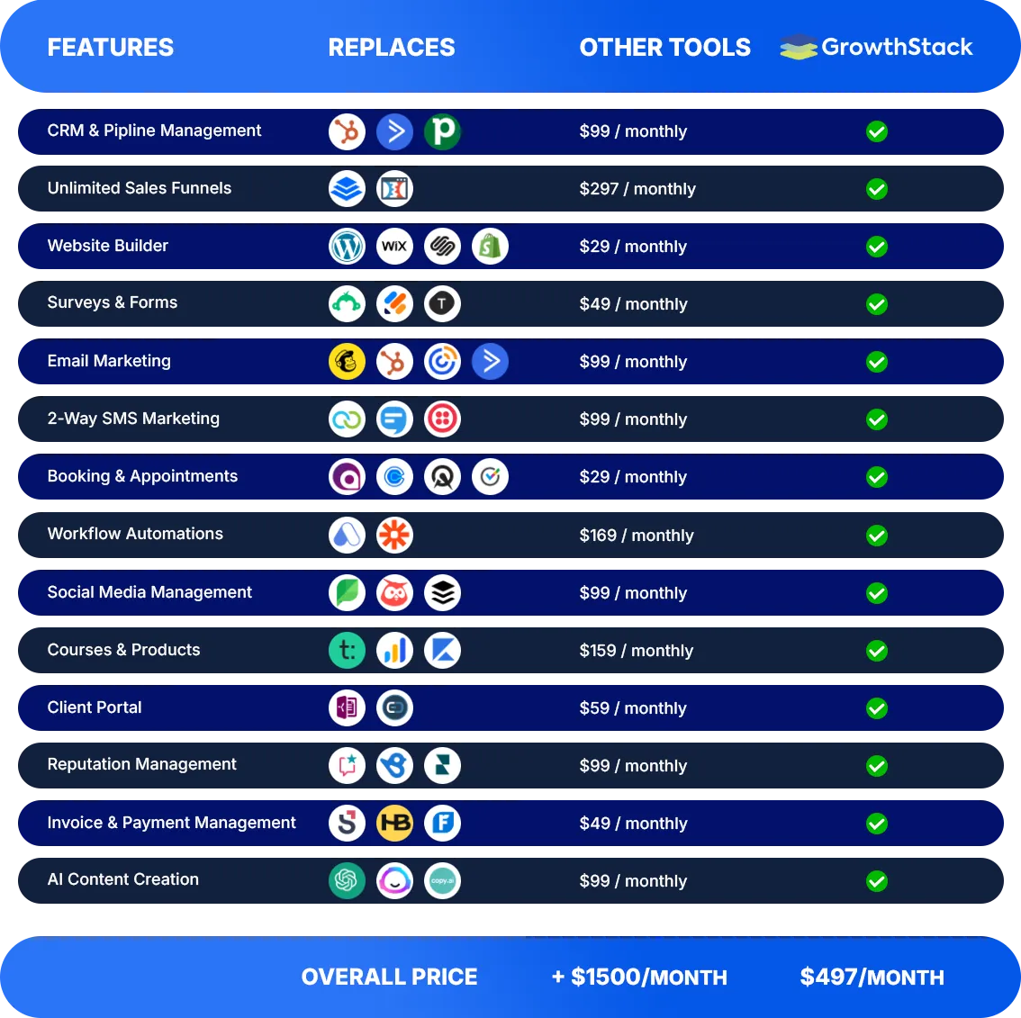 GrowthStack is best for established service-based businesses that already get leads—but know they’re losing revenue due to missed calls, slow follow-up, or disconnected systems.